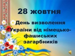 28 жовтня народ України відзначає 80 - річчя з дня визволення від німецько - фашистських загарбників. На українських землях війна тривала 1225 днів і ночей, з 22 червня 1941 року по