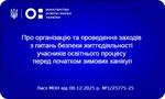 Про організацію та проведення заходів з питань безпеки життєдіяльності учасників освітнього процесу перед початком зимових канікул